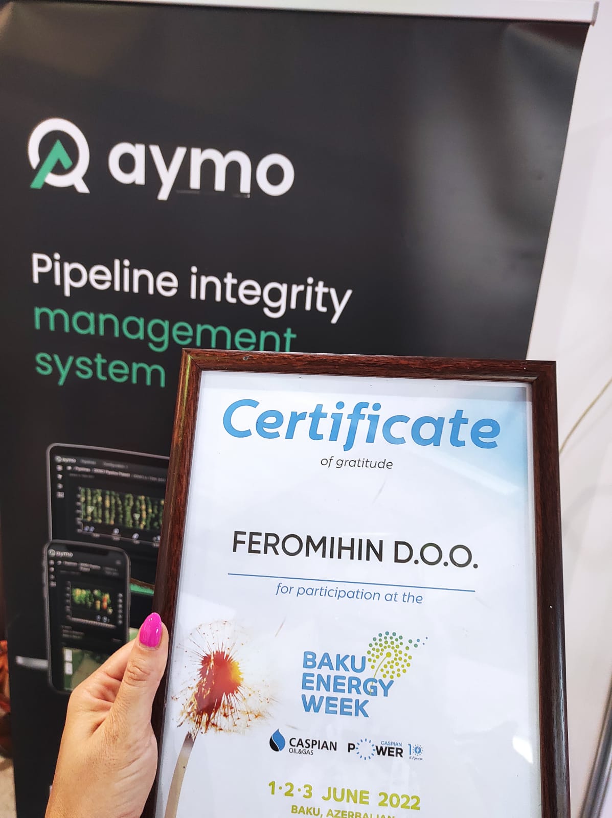 During the exhibition, Feromihin showcased innovative technologies connected to IT solutions, such as AYMO – pipeline integrity managment system, AMS – asset management system, Electronic line break control device and other applicable Innovative Corrosion protection, Pipeline repair solutions applicable for oil&gas industry.